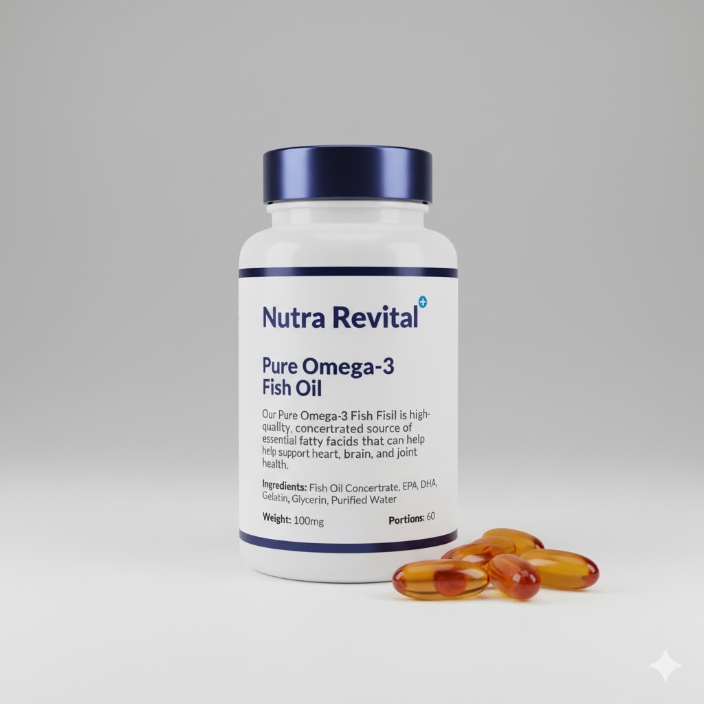 Our Pure Omega-3 Fish Oil is a high-quality, concentrated source of essential fatty acids that can help support heart, brain, and joint health.